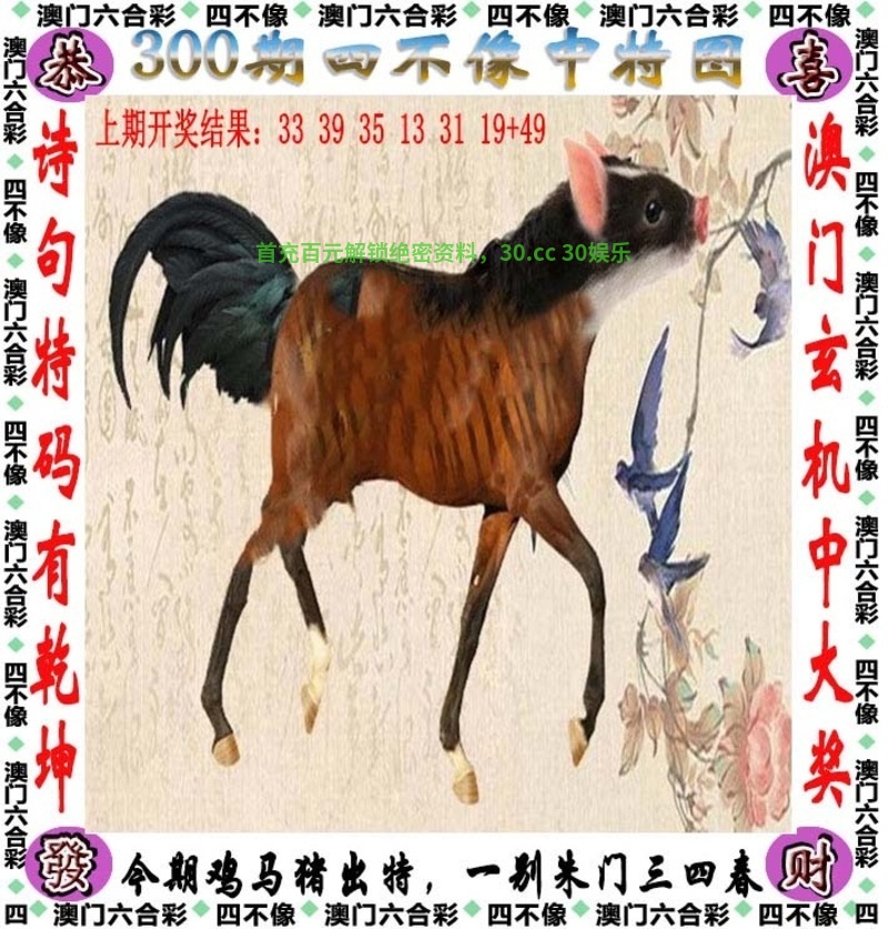 304期九肖羊虎猪鼠狗兔猴蛇开:马48