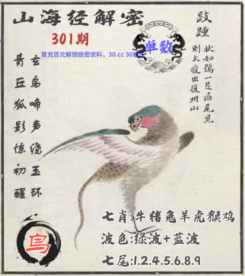 301期:两波中特👉绿波-蓝波👈开:牛05